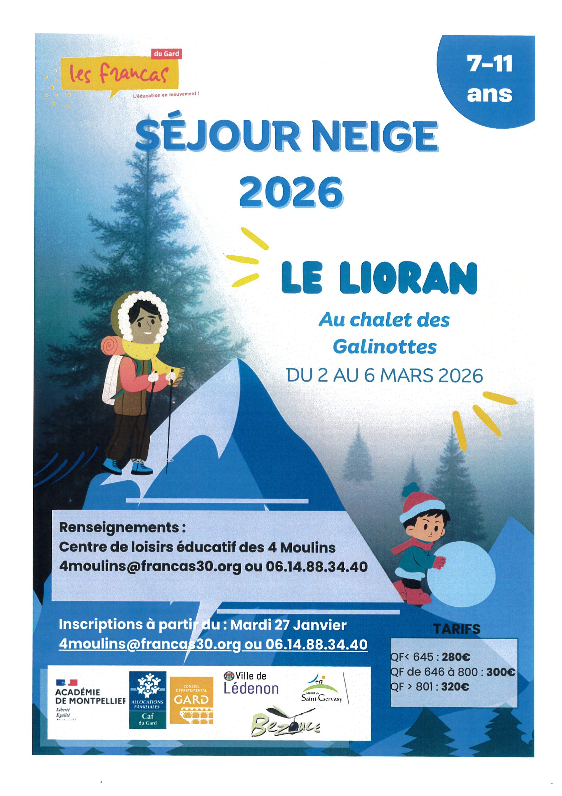 L’association départementale des Francas organise un séjour « neige » qui se déroulera du 02 au 06 mars 2026 à Lioran (Massif central).